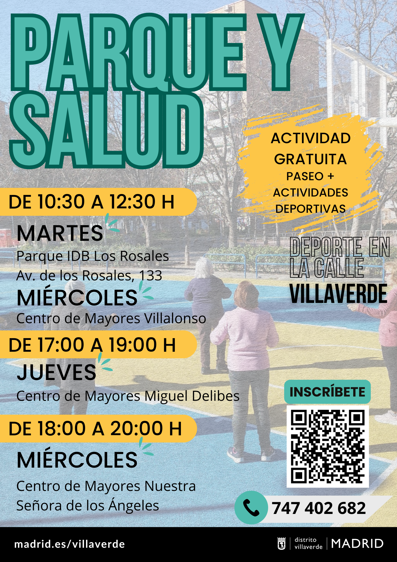 Las inscripciones son gratuitas y se realizarán a través del QR del cartel o accediendo a Parque y Salud - Deporte en la Calle Villaverde.