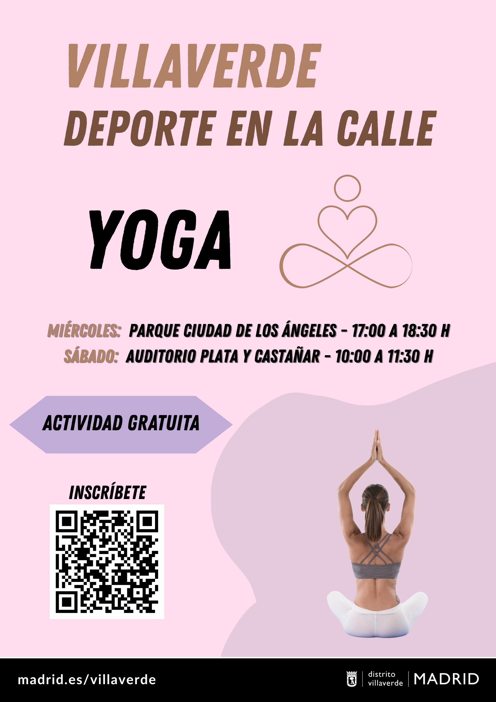 Las inscripciones son gratuitas y se realizarán a través del QR del cartel o accediendo a Yoga - Deporte en la calle Villaverde.